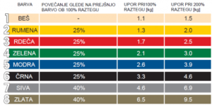 –  Bež barva, ki nudi upornost med 1,1 in 1,5 kg, se uporablja izključno za rehabilitacijske namene.
